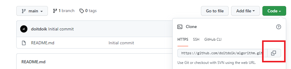 자신의 PC에 클론 시킬 폴더위치를 선택한다.
