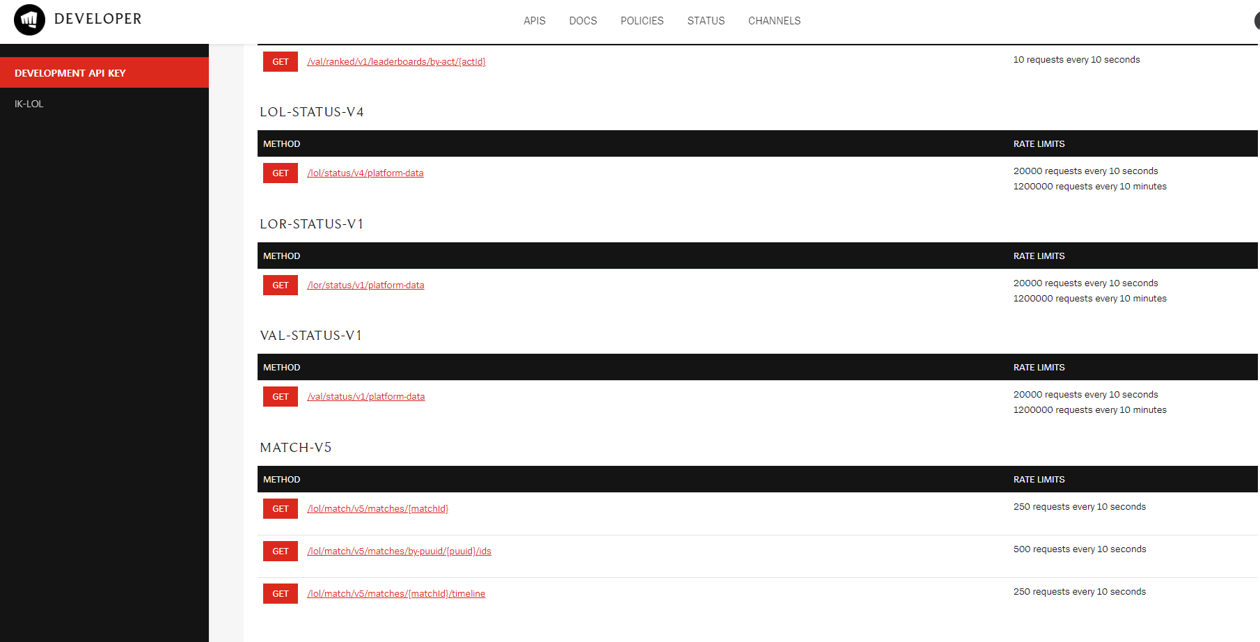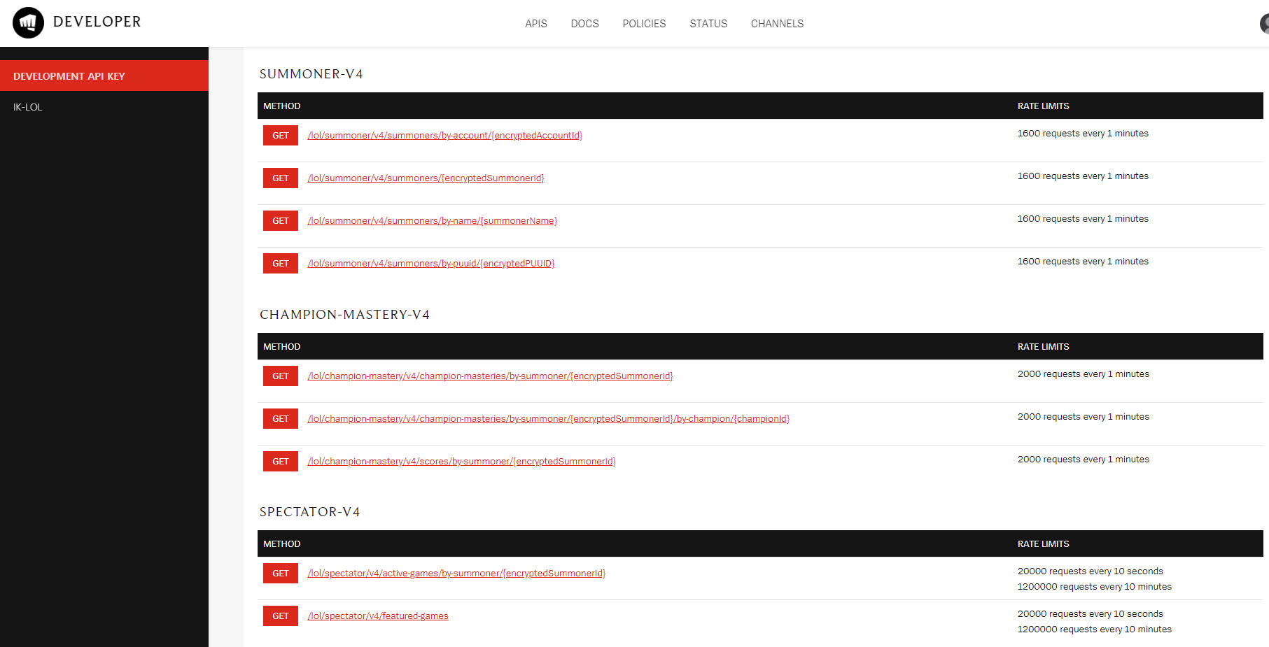 라이엇 api 신청 방법 라이엇 개발자 페이지 접속 https://developer.riotgames.com/ DEVELOPMENT API KEY는 임시 개발 키로 기간이 굉장히 짧고 주기적으로 키를 재할당 받아야한다. REGISTER PRODUCT를 클릭 P..