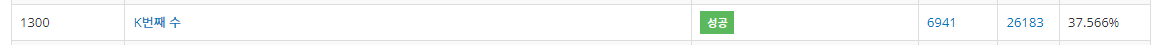 B를 오름차순 정렬했을 때, B[k]를 구해보자.