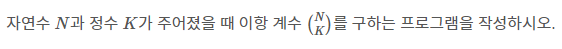 첫째 줄에 N과 K가 주어진다. (1 ≤ N ≤ 10, 0 ≤ K ≤ N)