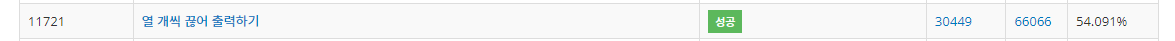 단어의 길이가 10의 배수가 아닌 경우에는 마지막 줄에는 10개 미만의 글자만 출력할 수도 있다.