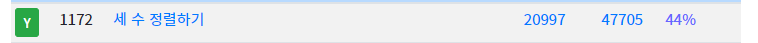 [Algorithm] 코드업 CodeUp 1172 세 수 정렬하기(python 파이썬) (1) | 2022.09.21 |